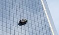 Firefighters shattered a pane of glass hundreds of feet in the air to rescue two 1 World Trade Center window washers whose scaffolding dangled at a precarious angle for more than an hour Wednesday afternoon.