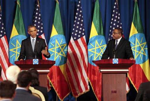 The president opened a news conference with Ethiopian Prime Minister Hailemariam Desalegn on Monday by remarking with admiration on the rare Abyssinian lions that live on the grounds of Ethiopia's National Palace.