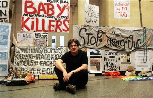 Artist Mark Wallinger's "State Britain" recreates the tent, placards and posters of Brian Haw, who set up camp outside Parliament in 2001 and remained until his death from cancer in 2011.