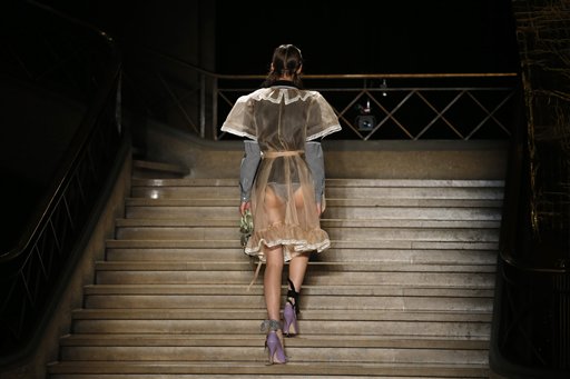 The Wednesday show was replete with quirky ideas — dyed fox-tails hanging off belts, sheer lingerie on top of nurses' outfits and padlocks locked to mismatched ankle-tied ribbons.