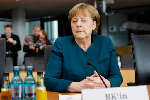 BERLIN (AP) — Chancellor Angela Merkel says she only found out about Volkswagen's use of software to cheat on emissions through the media.