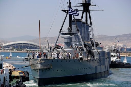 ATHENS, Greece (AP) — After three months of extensive maintenance and conservation work, a 107-year-old battleship returned Wednesday to its berth in Athens, where it serves as a floating museum.