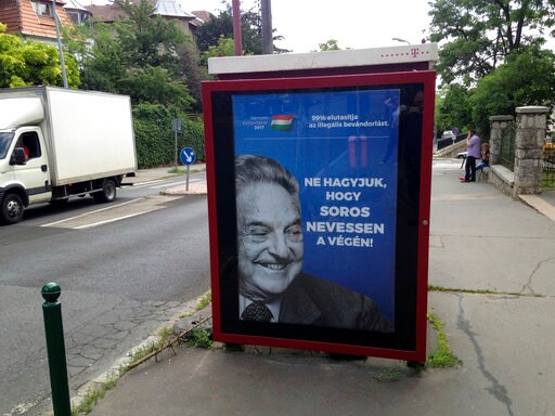 The ads, part of a campaign underscoring the government's anti-migration policies, show a smiling Soros, a Holocaust survivor who is a supporter of migrants, along with the caption "Let's not let Soros have the last laugh."