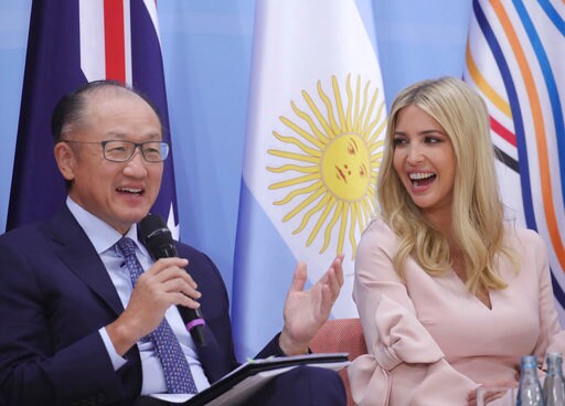 HAMBURG, Germany (AP) — President Donald Trump said Saturday the U.S. would contribute $50 million to a new World Bank fund conceived by his daughter that aims to help women entrepreneurs access capital and other support.