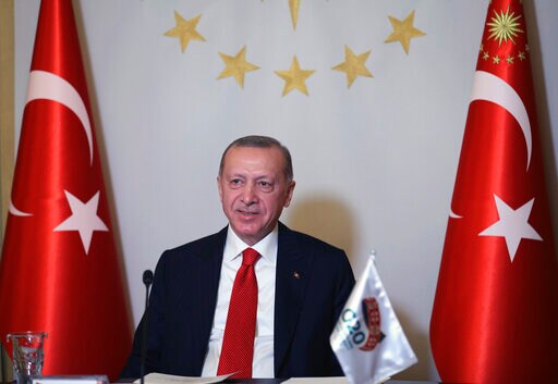 “We always see ourselves as part of Europe,” Erdogan said in a virtual speech to ruling party members. "We chose to favor Europe as long as they don’t force us to look elsewhere.”