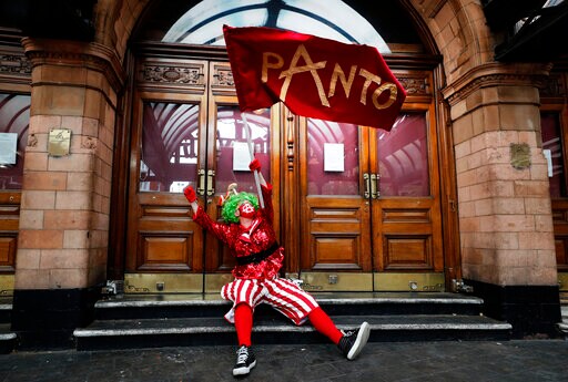 Scores of actors, technicians and theater workers led by pantomime “Dames” — male actors in fabulously eccentric drag -- marched through London’s West End to Parliament to the beat of showtunes Wednesday, asking the government for a plan to bring theaters back to life.
