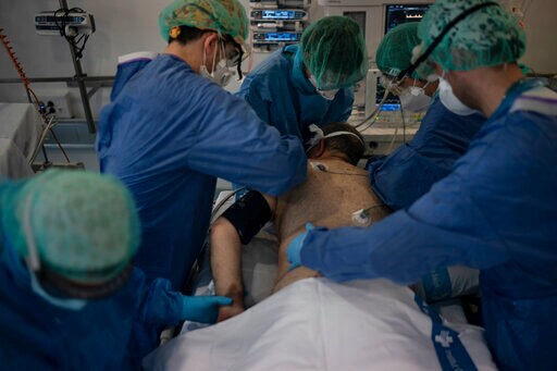 BADALONA, Spain (AP) — The tension is palpable. There is no non-essential talking. An orchestra of medical monitors marks the tempo with an endless series of soft, distinct beeps.