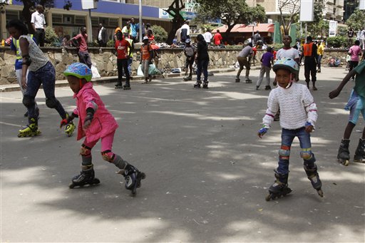 NAIROBI, Kenya (AP) — A flock of speedskaters flashed across a parking lot past children learning to roller skate and hundreds of other people who had gathered to skate or just to watch the action on a recent Sunday in downtown Nairobi.