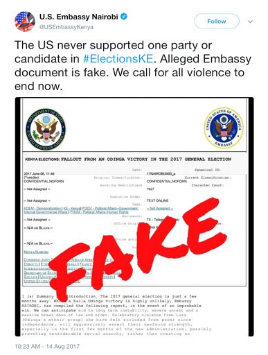Kenyan President Uhuru Kenyatta last year signed a cybercrimes bill that calls for fines and prison sentences for people convicted of spreading fake news. The law followed a disputed 2017 presidential election marred by online misinformation campaigns that raised political tensions in a country known for deadly post-vote violence along ethnic lines.