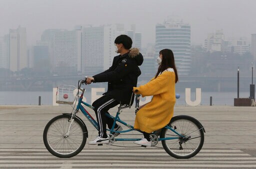 Fine dust levels in South Korea have hit new highs over the past week, leaving people wearing masks while commuting under thick-gray skies online users have compared to the scenes of the movie "Wall-E."