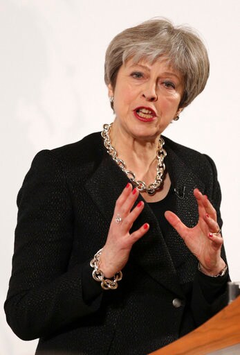 LONDON (AP) — Britain's prime minister is trying to ease the concerns of bankers after she torpedoed one of their biggest demands during a speech on the country's departure from the European Union.