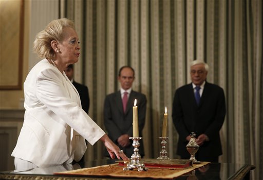 ATHENS, Greece (AP) — Greece's new prime minister, a top judge who is the country's first female premier, named the members of her caretaker government Friday as the country heads to early elections next month, the third time Greeks will go to the polls this year.