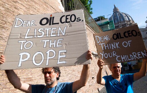 VATICAN CITY (AP) — Pope Francis is warning oil executives that a "radical energy transition" to clean, low-carbon power sources is needed to stave off the effects of a rapidly warming planet.