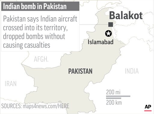 Pakistan said there were no casualties in India's airstrike near the town of Balakot on Tuesday.