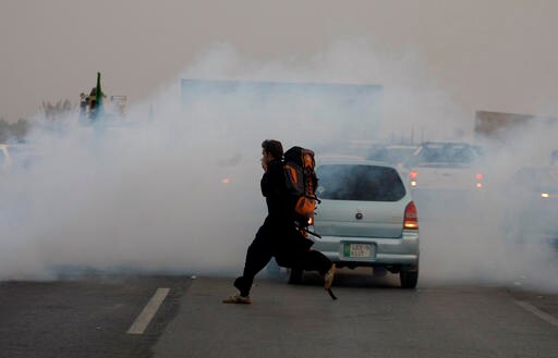 The violence erupted again Monday when police fired tear gas at nearly 3,000 supporters on a main highway some 80 kilometers (50 miles) northwest of Islamabad. Khan's party rules in the northwestern Khyber Pakhtunkhwa province and its chief minister, Pervez Khattak, and some cabinet ministers led the protesters.