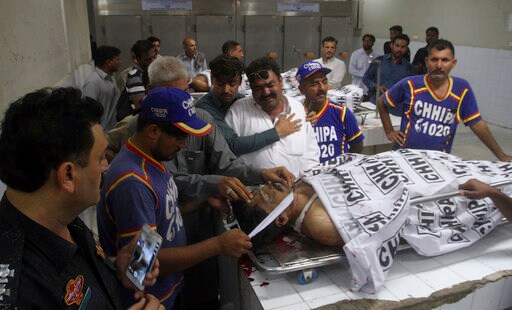 Another 14 people were killed Friday in a suicide car bombing near the office of the provincial police chief in the southwestern city of Quetta, police spokesman Shahzada Farhat said. That attack was claimed by a breakaway Taliban faction and the Islamic State group. Gunmen in the port city of Karachi attacked police officers at a roadside restaurant, killing four of them before fleeing, senior police officer Asif Ahmed said.