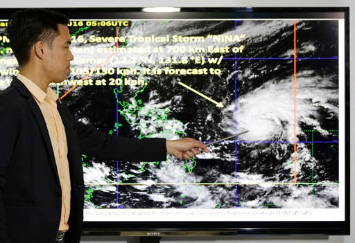 MANILA, Philippines (AP) — A powerful typhoon is on its way to slam into the eastern Philippines on Christmas Day as officials struggled to divert people's attention from family celebrations and travel. A provincial governor offered roasted pigs to entice villagers to move to emergency shelters.