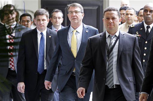 Carter defended U.S. Navy patrols in the contested waters that China objects to, saying the U.S. has been sailing in the South China Sea for decades. What's new and problematic, he said, is China's land reclamation and militarization of reefs and islets.