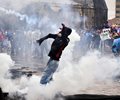Minutes later, police fired tear gas to deter some demonstrators from attempting to enter Colombia's Congress.