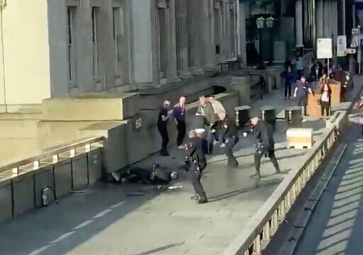 LONDON (AP) — UK counterterrorism police are searching for clues into an attack that left two people dead and three injured near London Bridge.
