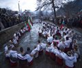 In the central mountain city of Kalofer, dozens of men dressed in white embroidered shirts waded into the Tundzha River waving national flags and singing folk songs Sunday. They danced for nearly half an hour, up to their waists in the freezing water, pushing away ice chunks.