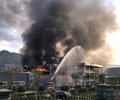 Rescue workers try to put out a fire after an explosion at a chemical plant inside an industrial park in Yibin, Sichuan province, China July 12, 2018. (China Daily via Reurters)