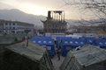 The arrival of the prefabricated units was a sign that many of the more than 87,000 people resettled after the Monday night earthquake may be homeless for some time. Many have been enduring temperatures well below freezing in flimsier tent-like units with blue plastic sheeting on the outside and a quilted cotton lining inside.