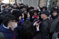 Li was surrounded by police, who were managing the crowd in front of the building where the families met government officials. They corralled journalists behind a barrier made of ropes and a whiteboard.