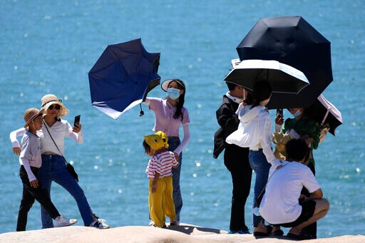 On the Chinese coast across from Taiwan, tourists gathered Friday to try to catch a glimpse of any military aircraft heading toward the exercise area. Fighter jets could be heard flying overhead and tourists taking photos chanted, “Let’s take Taiwan back," looking out into the blue waters of the Taiwan Strait from Pingtan island, a popular scenic spot.