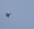 A Chinese military jet flies over Pingtan island, one of mainland China's closest points to Taiwan, in Fujian province on Saturday. (Hector Reamal/AFP via Getty Images)