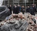 Many buildings in the capital cracked and walls and rooftops were damaged. Downtown streets were littered with debris. Concrete slabs fell on cars and chimneys landed in front of entrances.