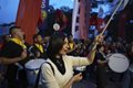 Rain showers cleared long enough for marchers to walk along a main thoroughfare hoisting trade union banners and holding placards reading “It won’t pass” and “Cyprus will stay secular” before gathering for a concert.