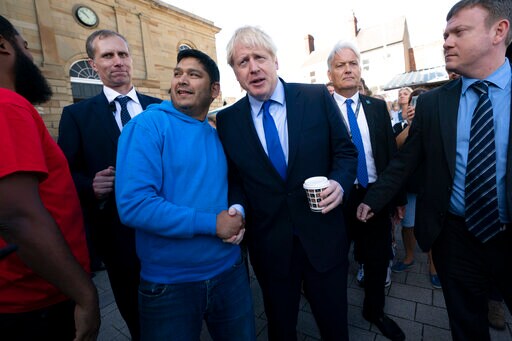 Johnson says the U.K. will leave the EU on the scheduled Oct. 31 date, with or without a withdrawal agreement. But he insists he can strike a revised divorce deal with the bloc in time for an orderly departure. The agreement made by his predecessor, Theresa May, was rejected three times by Britain's Parliament.