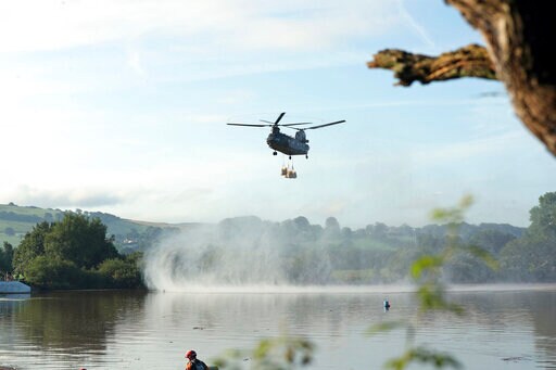LONDON (AP) — A Royal Air Force helicopter and firefighters are shoring up a reservoir wall in northwest England amid fears that a rain-damaged dam could collapse.
