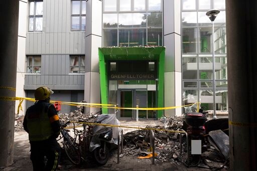 The fire ripped through the 24-story tower early Wednesday. Two British officials have said that new exterior cladding used in a renovation of Grenfell Tower may have been banned under U.K. building regulations. The paneling has been blamed for quickly spreading the flames.