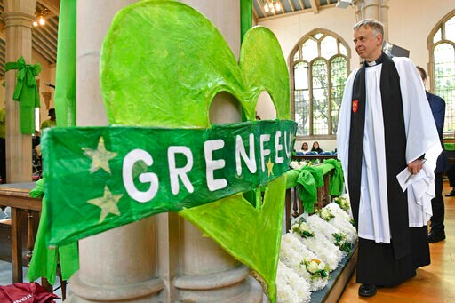 Survivors, neighbors and politicians including London Mayor Sadiq Khan attended a church service of remembrance on Friday for the Grenfell Tower blaze, the deadliest fire on British soil since World War II.