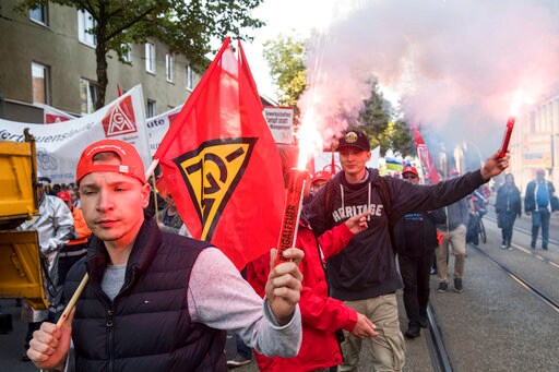 BERLIN (AP) — Thousands of steelworkers have gathered in western Germany in a protest over the planned merger of the European steel operations of Thyssenkrupp and Tata Steel, which is expected to cost up to 4,000 jobs.