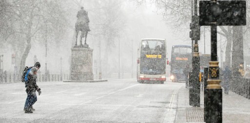 Britain, which is buffered by the Atlantic Ocean and tends to have temperate winters, saw heavy snow in some areas that disrupted road, rail and air travel and forced hundreds of schools to close. British Airways canceled a number of short flights while trying to preserve its long-haul schedule to and from London Heathrow Airport.