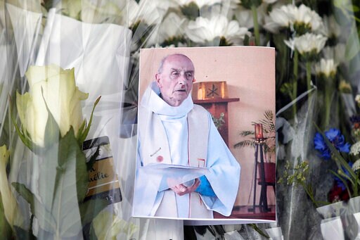 The Islamic State group claimed responsibility for the attack, in which two nuns and an elderly couple were held hostage before the assailants slashed the priest’s throat and seriously wounded the other man. Another nun slipped away and raised the alarm, and police fatally shot both attackers as they left the church.