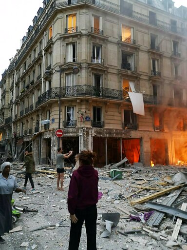 Paris authorities said 12 neighboring buildings that were damaged by the blast apparently due to a gas leak have been evacuated. Temporary accommodations were provided for about 40 residents while dozens of others have been housed by family and friends.