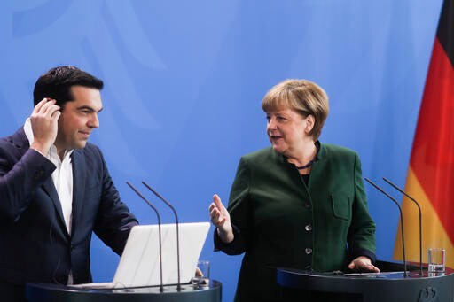 BERLIN (AP) — Greece's prime minister says he wants to help Greeks who have made "enormous sacrifices in the name of Europe" as he visits German Chancellor Angela Merkel amid an argument about a Christmas bonus payment for low-earning pensioners.