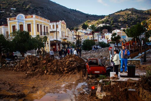 ATHENS, Greece (AP) — Greek authorities have declared a state of emergency on the small Aegean Sea island of Symi after a torrential rainfall flooded homes and shops, swept vehicles into the sea and cut power to the island.