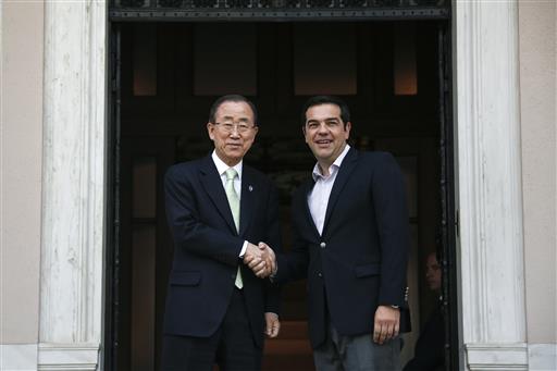 Ban Ki-moon is in Athens for talks with government officials. Later Saturday he will visit refugee camps on the eastern Aegean island of Lesbos, where most migrants arrive on smuggling boats from Turkey.