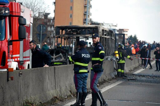 Law enforcement officers on Wednesday stopped the bus that had traveled 40 kilometers (25 miles) from the province of Cremona to Milan, freeing the 51 middle school students and their chaperones as the driver set the bus on fire. No one was seriously injured.