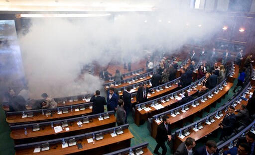 PRISTINA, Kosovo (AP) — Kosovo's opposition on Wednesday used tear gas to disrupt a parliamentary vote on a border demarcation deal with Montenegro.