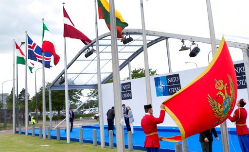 BRUSSELS (AP) — Montenegro's flag has been raised at NATO headquarters in Brussels after the Balkans country officially became the 29th member of the world's biggest military alliance this week.