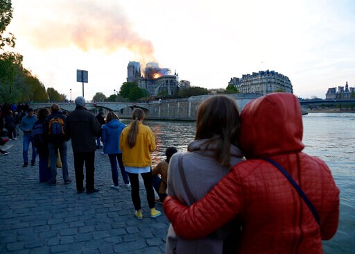 At his church in the west of Paris, the Rev. Guillaume de Menthiere felt the mood shift even as the cathedral was still spewing ash and smoke over the capital, as people filed in to pray at his church and to listen to its bells' mournful tolling in solidarity for its big sister, Notre Dame.