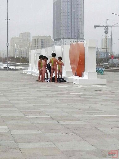 Sporting lime green "mankinis" and black wigs, the men had hoped to take a picture in front of the "I Love Astana" sign earlier this month.