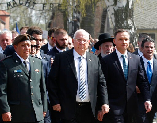 WARSAW, Poland (AP) — A Polish nationalist group asked prosecutors Tuesday to investigate whether Israel's president broke a law that criminalizes falsely blaming Poland for the Holocaust crimes of Nazi Germany.
