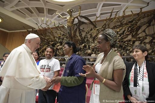 The pope spoke during a meeting at the Vatican with an international group that included environmentalists, labor union activists and indigenous rights activists. In the audience was the former president of Uruguay, Jose Mujica, a defender of the poor.